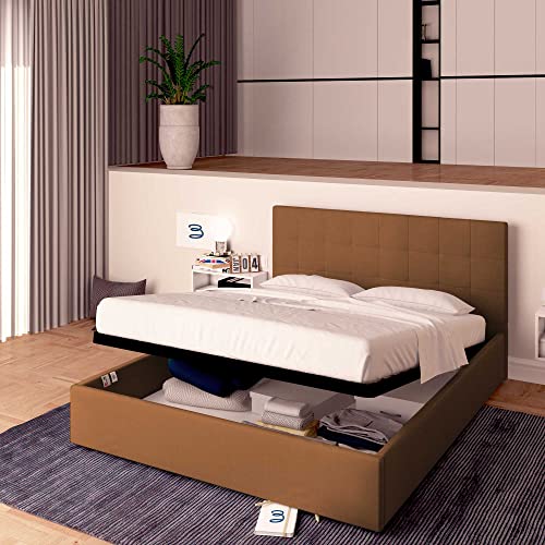 Bett mit Stauraum, Bezug alle Kunstleder. Elegantes Kopfteil, formstabil, ideal sondern sämtliche Arten von Matratzen sondern Doppelbetten alle Memory-Schaum, Polyurethan, Latex oder Federkern.