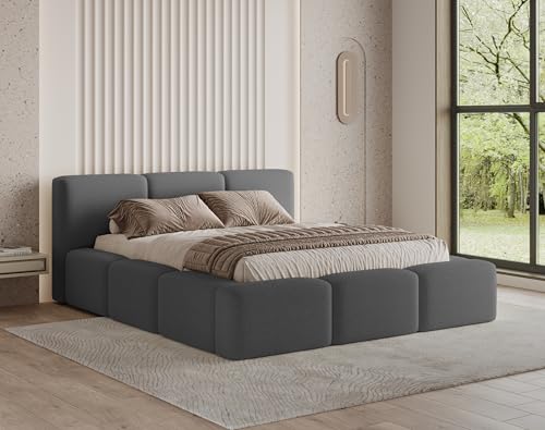 Maße Bettfläche: L. 194 x T 214 x H. Bodenköpfe 120 Gepolsterte Konstruktion, Maße können leicht abschweifen.