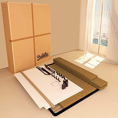 Innovatives Öffnungssystem mit hydraulischen Kolben ermöglicht ein einfaches Erhöhen in Bezug auf den Heft, das Netz und die Matratze. Die Bewegung ermöglicht einen einfachen Einsicht zum Aufbewahrungsfach.