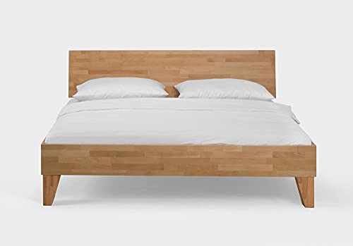 Massivholzbett – mit Kopfzeil und massiven Füßen – in verschiedenen Größen (alias Übergrößen) erhältlich – ohne Lattenrost und ohne Matratze