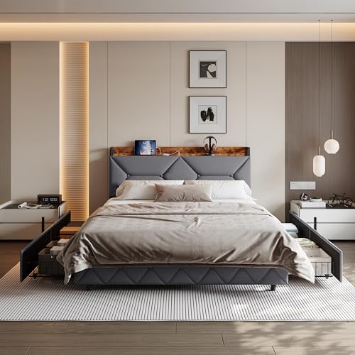 DURCHDACHTES AUFBEWAHRUNGSDESIGN: Zwei geräumige Schubladen am Fußende des Bettes vermindern die Aufbewahrung von Kleidung, Bettwäsche und persönlichen Gegenständen und umsorgen ein aufgeräumtes Schlafzimmer. Die Schubladen lassen sich sanft verschieben und herausziehen, ohne Ihren Schlaf zu irritieren. Sie vereinen Schönheit und Funktionalität, um Ihr Schlafzimmer gepflegt und organisiert zu halten, und sind die perfekte Ablösung für die Aufbewahrung auf kleinem Raum.