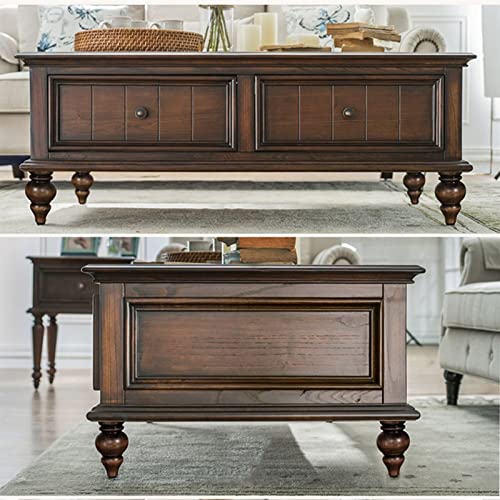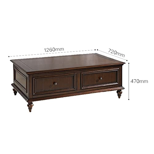 Klassischer Couchtisch aufgebraucht Holz mit Schublade, 49,6″ rechteckiger rustikaler Couchtisch aufgebraucht schwarzem Walnussholz, Retro-Cocktailtisch, Couchtisch für Wohnzimmer/Büro