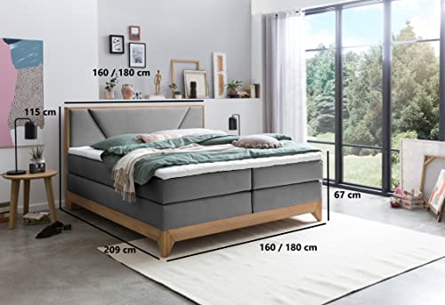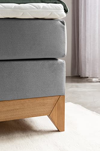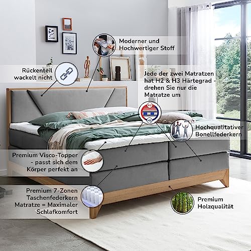⚫ Belanoti RIVIERA Boxspringbett 180×200 mit Massivholz alle Eiche ist das Bett für höchste Ansprüche an Qualität, Liegekomfort, Erholung und Ästhetik. Boxspringbett wird nach höchstem Standard hergestellt – hochwertige Materialien und Erfüllung, Premium Stoff & Luxus Qualität.