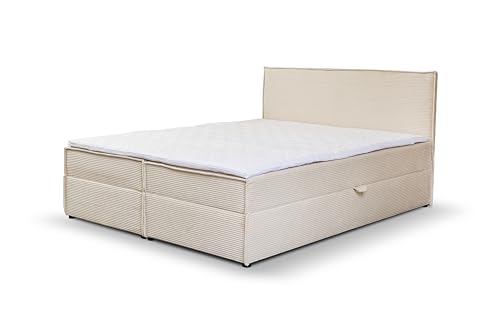 Skandinavisches Boxspringbett mit Bettkasten.