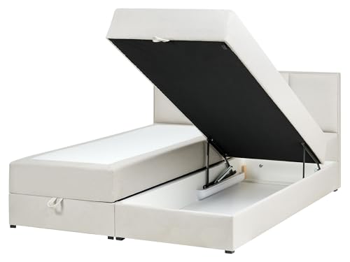 Feste und widerstandsfähige Matratze (Härtegrad H2), Ausgezeichneter Komfort durch gleichmäßige Gewichtsverteilung, Komfortable und breite Liegefläche, Die spezielle Beschichtung sorgt für eine einfache und effiziente Reinigung, Leichtes Öffnen des Bettkastens dank Gasdruckfedermechanismus