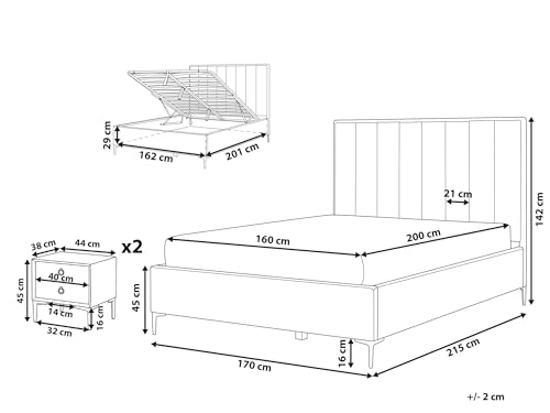 Sie kaufen: 1 x Bettrahmen, 2 x Nachttische, 1 x Federholzlattenrost (Anzahl der Latten: 24)