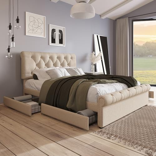 Stilvoller und moderner Rahmen: Das Bettrahmen perfekte Kombination aus robustem Metallbettrahmen und geometrischem Stoffkopfteil, klassische Linienführung für einen modernen Vintage-Stil, der zu jeder Art von Schlafzimmer-Einrichtung passt. Der gepolsterte Bettrahmen kann bis zu 800 Pfund katalysieren und ist somit für den täglichen Gebrauch nach Maß. Das innovative Design sorgt für wackelfreie Haltbarkeit, ohne dass eine Boxspring-Matratze erforderlich ist