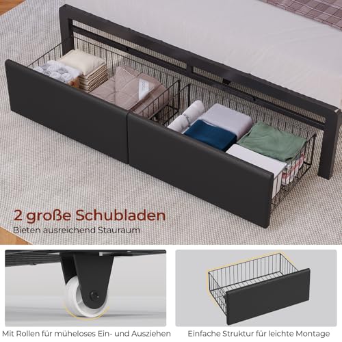 Fußteilschubladen: Das Fußteil verfügt über zwei geräumige Schubladen zur Aufbewahrung von Kleidung und Haushaltsgegenständen. Die Schubladen sind mit einem einfachen Rahmen für eine einfache Montage ausgestattet und verfügen über leichtgängige Führungen für einen mühelosen Einblick. Die sichere Bedienung wird durch Begrenzungsschrauben gewährleistet