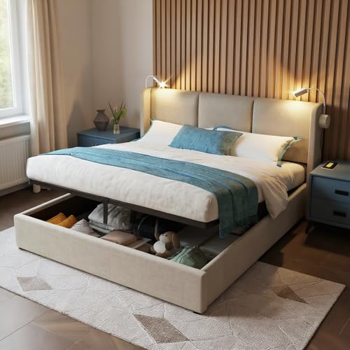 Atmosphäre & Technologie: Anpassbare RGB-LED-Beleuchtung (+6000 Farben) und integrierte USB/am Lebensabend-C-Ladeanschlüsse anstelle ein modernes vernetztes Bett.