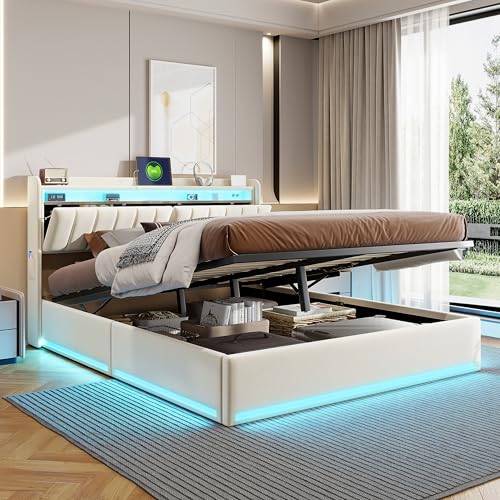 Hydraulisches Hebesystem: Gepolstertes LED-Hydraulikbett. Dieses Bett ist mit einem hydraulischen Hebesystem ausgestattet. Dieses hydraulische Unterstützungssystem ermöglicht das einfache Anheben des Lattenrosts und bietet somit abundant Stauraum. Ziehen Sie einfach an den Lattenrosten des Bettes, um den Platz unter dem Bett alkoholisiert auszunutzen und Bettwäsche, Kleidung und andere Gegenstände aufzubewahren. Ideal für Familien, die mehr Stauraum benötigen.
