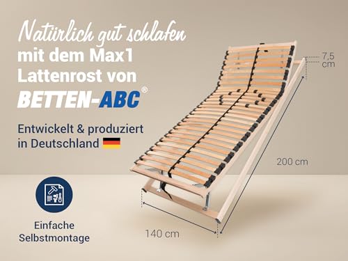 Betten-ABC – „Max1 Lattenrost – 140x200cm – individuelle Kopf- & Fußteilverstellung sowie Härtegradverstellung – Selbstmontage – hergestellt aus Schicht- & Buchenholz in Deutschland