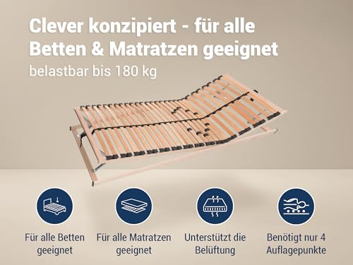 NATÜRLICH GUT SCHLAFEN – Der TÜV Süd-zertifizierte Max1 Lattenrost mit individueller Härtegradverstellung bietet perfekte Unterstützung, ausreichende Belüftung & gezielte Druckentlastung für jeden Schlaftyp. Mit nur ca. 3 cm Leistenabstand ist der Lattenrost für alle Matratzen & Betten geeignet.