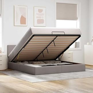 Großer Stauraum unter dem Bett: Dank des hydraulischen Hebemechanismus bietet der Bettrahmen massenweise Stauraum unter dem Bett, sodass der Platz maximiert wird, ohne zusätzliche Bodenfläche zu abfordern. Mit einem einfachen Zug am Griff hebt sich der Lattenrost sanft an, sodass du deine Gegenstände schnell und mühelos herausholen kannst.
