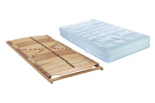 Betten & Zubehör-Betten & Bettrahmen Lattenroste ohne Matratze 2 Stück mit 42 Latten 90 x 200 cm – unser bequemer Lattenrost wird Sie Ihr Bett noch mehr lieben. Mit einem massiven Buchenholzrahmen und Birkenleisten ist der Lattenrost robust und langlebig. Die 7 Komfortzonen bieten optimalen Halt für Ihren Körper. Beide Enden der Lamellen werden von SBS-Gummikappen für eine bessere Stabilität der gesamten Struktur an Ort und Stelle gehalten. Durch die 6 verstellbaren Doppellamellen in der Mittelzone kann die Festigkeit des Bodens an Ihre Bedürfnisse angepasst werden. Der Kopfbereich ist für Ihre Bequemlichkeit verstellbar. Die Montage ist einfach. Bitte beachten Sie, dass die Lieferung nur 2 Lattenroste umfasst, Matratzen und Bettgestelle sind nicht im Lieferumfang enthalten. Gut zu wissen: Montage ist erforderlich aufgrund von Versandbeschränkungen, die das Packmaß auf maximal 120 cm begrenzen. Betten & Zubehör-Betten und Bettrahmen