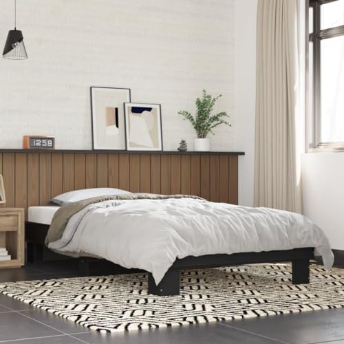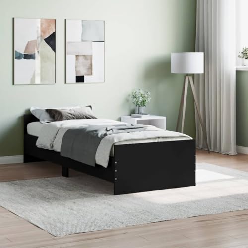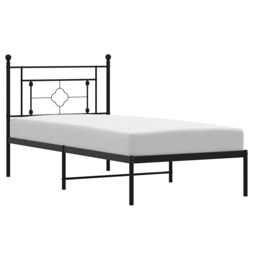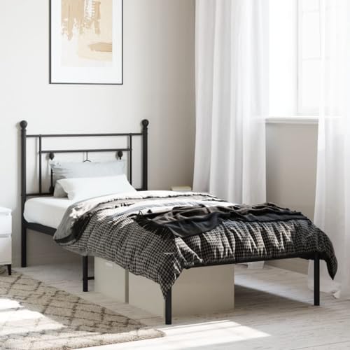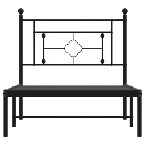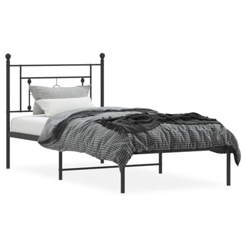 Bettgestell mit Kopfteil Metallbett Bed Frame Bettgestell Bettrahmen Kopfteil Bett Tagesbett Metall Schwarz 90×200 cm – 374332