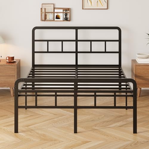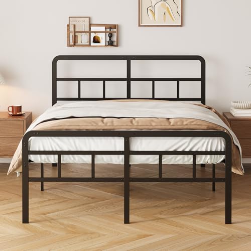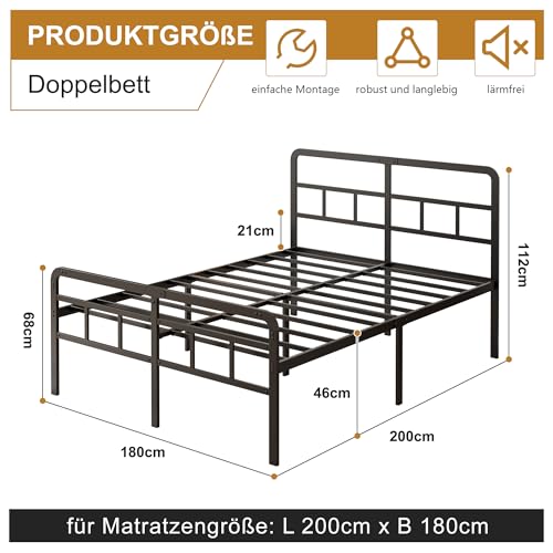 Bettrahmen 180×200 cm mit Kopfteil und Fußteil, 46cm Höhe Metallbett Doppelbett Bettgestelle, für Schlafzimmer Gästezimmer, Leichte Montage, Geräuschfrei, Schwarz