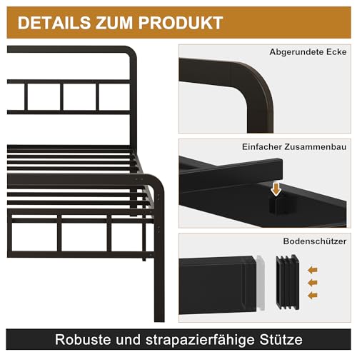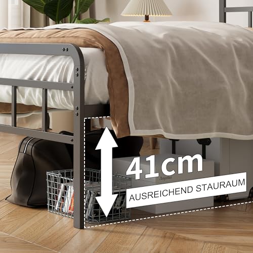 Stauraum unter dem Bett: Metallbett verfügt über eine lichte Höhe von 46 cm, die viel Platz für die Aufbewahrung von Gegenständen und eine einfache Reinigung bietet und die Raumnutzung im Schlafzimmer verbessert. Die ergonomische Höhe gewährleistet Komfort für alle Altersgruppen.