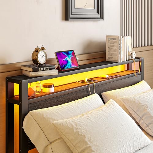 【Praktisches Design und starke Unterstützung】Praktisches 2-Tier Storage Headboard kann leicht einige kleine Gegenstände, wie Ihr Telefon, Gläser, Dekoration usw. platziert werden.