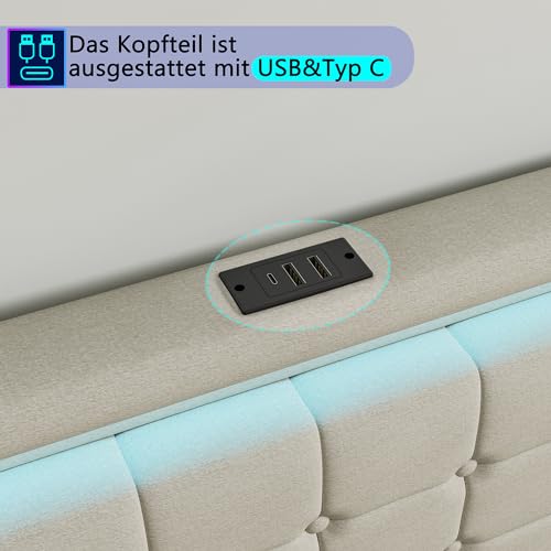【Praktisches Kopfteil mit USB-Ladestation】Das gepolsterte Kopfteil in hautfreundlichem Leinen bietet zwei offene Ablagefächer für Bücher, Smartphone & Co. Integriert sind zudem 2 USB-Anschlüsse und 1 moderner USB-C-Anschluss – zum gleichzeitigen Laden aller Ihrer Geräte. So haben Sie die Gesamtheit Wichtige stets bequem griffbereit.