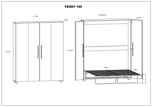 Ein innovatives Möbelstück, mit dem Sie im Schlafzimmer oder Kinderzimmer so reichhaltig Platz wie möglich sparen können. Ein Schrankbett ist der beste Verschollen, um einen Raum anzupassen, in dem Sie ein Bett aufstellen müssen, doch gleichzeitig ist Ihnen der freie Platz wichtig. Die Möbel ermöglichen es Ihnen, abends zu schlafen oder sich auszuruhen, während sich das Bett tagsüber schnell zusammenklappen lässt und sich im Handumdrehen in einen stehenden, eleganten Kleiderschrank verwandelt. Das Schrankbett ist sehr praktisch und funktionell. Die Bestellung wird auf einer Palette geliefert. Der Legat bringt die Bestellung nicht ins Haus, sondern liefert sie vor dem Gebäude aus. Möbel zur Selbstmontage.
