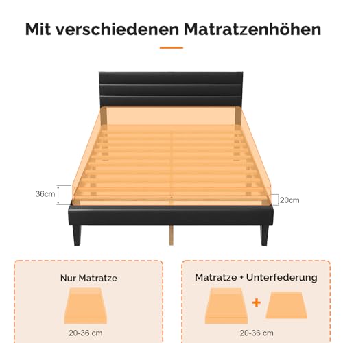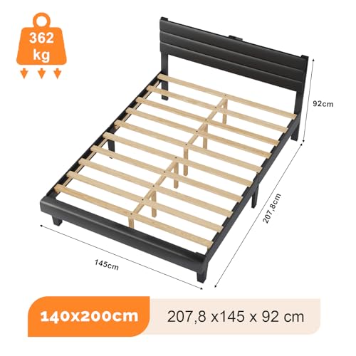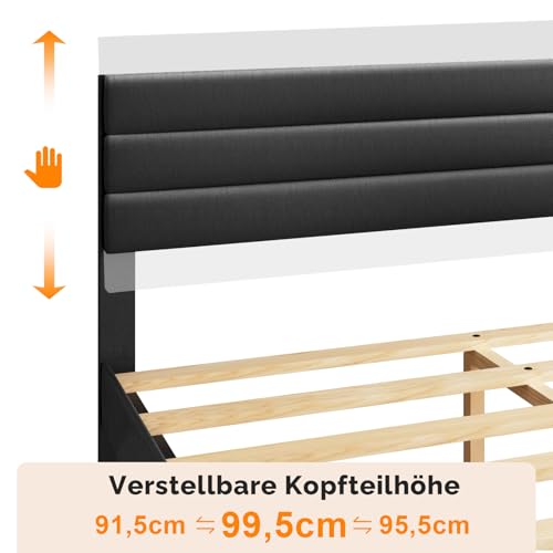 Bonnlo Polsterbett 140×200 cm mit verstellbarem Kopfteil, Bett 140×200 mit Lattenrost aus Holz, PU-Leder(ohne Matratze)