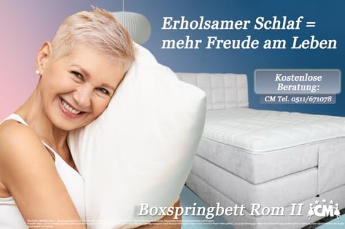 Das beliebte Boxspringbett Rom-II in der Größe 120×200 cm mit Aggregat, maßgeschneidert verstellbares Kopfteil und Fußteil. Qualität Made in Germany. Die Auswahl der Ausstattung erfolgt telefonisch vor oder nach Ihrer Anbau.
