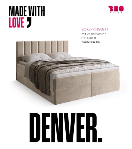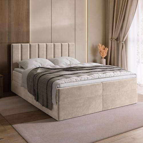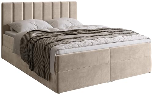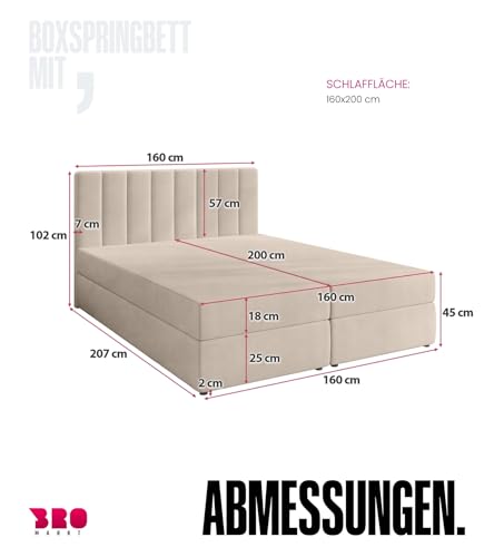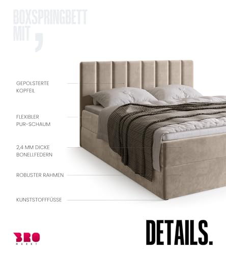 BROMARKT Boxspringbett mit Bonell Matratze Härtegrad H3 160x200cm Polsterbett mit Bettkasten Doppelbett mit Topper gepolsterte Kopfstütze Bett für Schlafzimmer Denver Beige