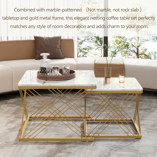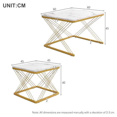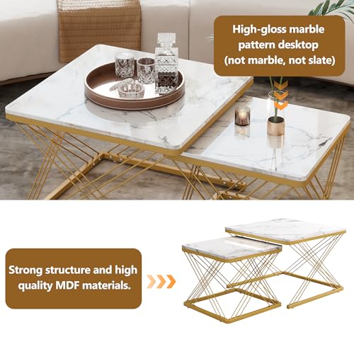 Hochglänzende Marmoroptik: Alle beide Tischplatten sind mit einer eleganten, hochglänzenden Marmoroptik beschichtet.