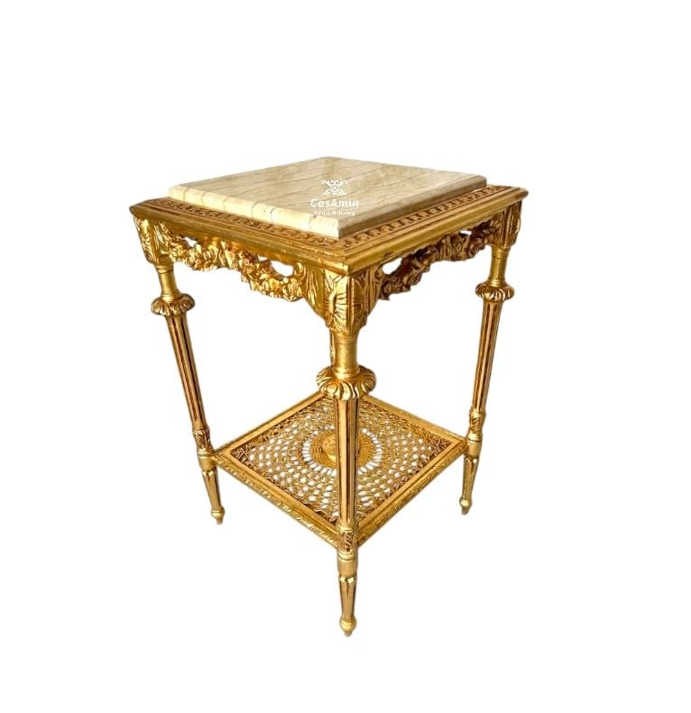 Reproduktion eines Beistelltischs im antiken Barockstil mit Marmorplatte. Dieser Stil ist in 3 Farben erhältlich: Weiß, Gold und Ag.