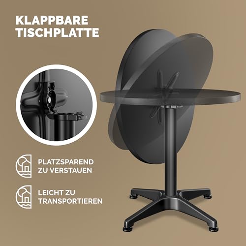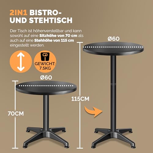 Casaria® 2in1 Stehtisch Höhenverstellbar Klappbar 70 cm / 115 cm Aluminium Wetterfest Ø 60 cm Rund Outdoor Indoor Beistelltisch Bistrotisch Schwarz