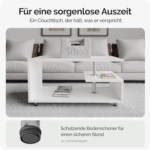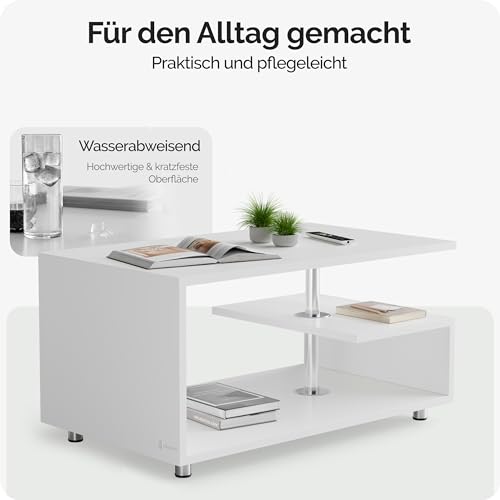 PFLEGELEICHT – Die kratzfeste Beschichtung des Wohnzimmertisches ist wasserabweisend und lässt sich bei Verschmutzungen einfach mit einem weichen, leicht angefeuchtetem Baumwolltuch abreiben. Dank der mitgelieferten Montageanleitung, ist der Tisch schnell und einfach montiert.