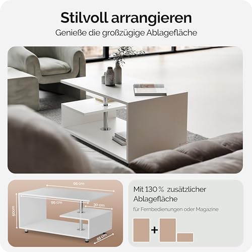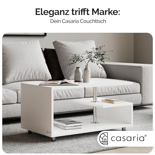 INNOVATIVES DESIGN – Der stilvolle CASARIA Couchtisch Orlando, mit den Maßen 95x55x50cm, ist in den Farben Weiß, Weiß-Eiche, Weiß-Schwarz und Holz-Grau erhältlich. Der Beistelltisch lässt sich mit vielen Einrichtungsstilen up to date herleiten und wird zum Möbel Highlight in deinem Wohnzimmer.