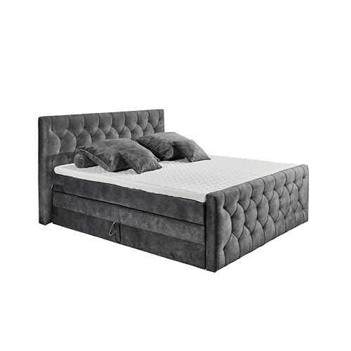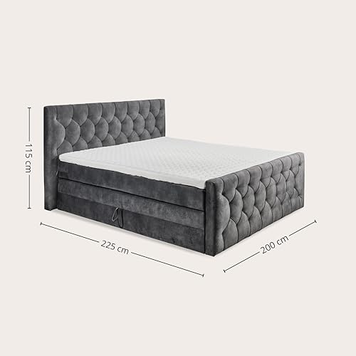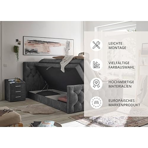 MODERN – In Anbetracht der außergewöhnlichen Steppung im Kopf- und Fußteil und dem samtweichen Bezug schafft dieses Bett eine gemütliche Stimmung, ideal stattdessen erholsamen Schlaf und entspannte Stunden am Tag.