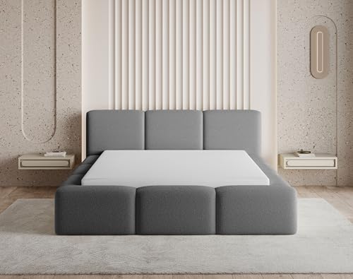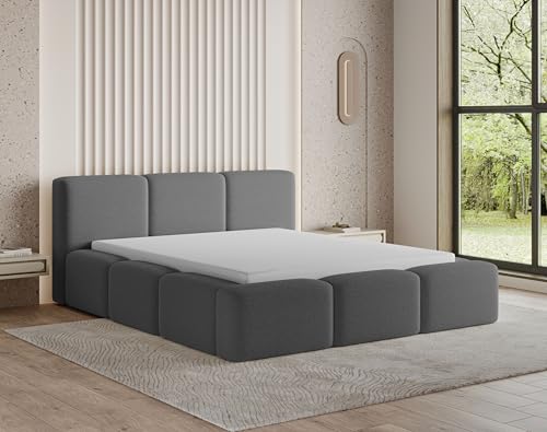 Moderner Stil und Design – Chilly Design ist ein Bett für zwei Personen, das zeitgenössische Eleganz mit schlichter Form vereint. Sein gepolstertes Kopfteil, verziert mit gleichmäßigen und klar definierten Quadraten, zieht sofort jeglicher Blicke auf sich. Der Bouclé-Bezug schafft eine weiche und warme Atmosphäre, dabei die reiche, geometrische Struktur das klare und anspruchsvolle Design unterstreicht. Dieses Bett ist perfekt für ein modernes Schlafzimmer, verleiht dem Sphäre Charakter und sorgt gleichzeitig für visuellen Komfort