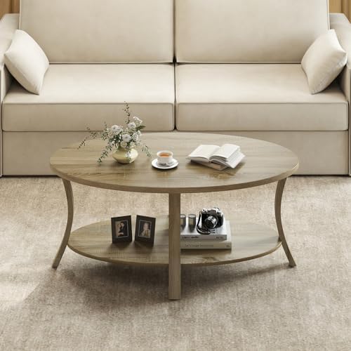 【Bequeme 2-stöckige Gestaltung】Der Couchtisch verfügt über eine geräumige Tischplatte und ein praktisches offenes Regal darunter. Ideal zur Aufbewahrung von Büchern, Zeitschriften und Dekorationsartikeln, hilft dieser Tisch, Ihren Wohnbereich hübsch und organisiert zu halten.