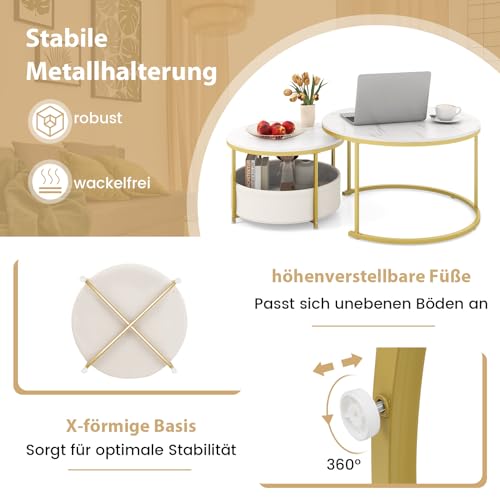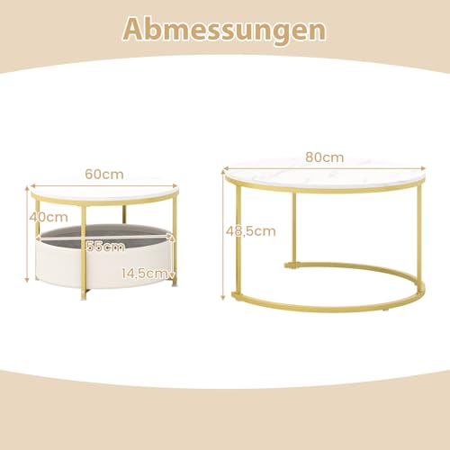 【Vielseitiges Tisch-Set】Das 2-teilige Couchtischset enthält einen großen 80 cm Tisch und einen kleineren 60 cm Tisch. Perfekt aufeinander abgerundet für ein einheitliches Erscheinungsbild, können sie auch verriegelt verwendet werden, um unterschiedlichen Bedürfnissen gerecht zu werden und so Flexibilität und Funktionalität in jeder Wohnraumgestaltung zu bieten.