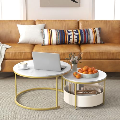 【Einfache Pflege】Halten Sie Ihr Zuhause sauber mit dem runden Wohnzimmertisch-Set, bei dem der große Kaffeetisch eine offene Basis für einfaches Kehren darunter besitzt. Beide Holztische haben glatte Oberflächen, die das Entfernen von Verschüttetem schwächer machen.