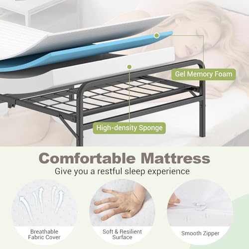 【Bequeme Matratze】 Das Klappbett mit Matratze kombiniert einen atmungsaktiven, abnehmbaren Bezug mit Gel-Memory-Schaum und einer hochdichten Schaumschicht für druckfreie Unterstützung. Dank der kühlenden Gel-Schicht, die Körperwärme ableitet, wachen Sie erfrischt auf.