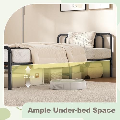 【Stauraum unter dem Bett】 Eine großzügige Bodenfreiheit von 23 cm verwandelt dieses klappbare Bett mit Kopfteil in einen versteckten Stauraum für Koffer, Schuhorganizer oder Saugroboter. Der unter dem Bett verfügbare Platz hält den Boden gepflegt und erleichtert die Reinigung.