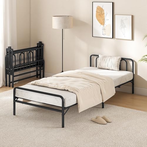 Entdecken Sie die Faszination dieses stilvollen klappbaren Bettgestells, das nicht Daher Platz spart, sondern aka Ihr Schlaferlebnis mit einer luxuriösen Matratze ganz kühlendem Gel-Memory-Schaum verbessert. Perfekt für kleine Wohnungen, Vielumzieher oder Outdoor-Fans lässt sich dieses portable Bett schnell zu einer schlanken, handlichen Größe zusammenklappen, die in Kofferraum oder Schrank passt. Der schwere Metallrahmen trägt bis zu 220 kg und das elegante, gebogene Kopf- und Fußteil sorgt für Stabilität und Stil. Zudem bietet der versteckte Stauraum unter dem Bett eine aufgeräumte Umgebung. Verwandeln Sie Ihren Weltall und Ihren Schlaf!