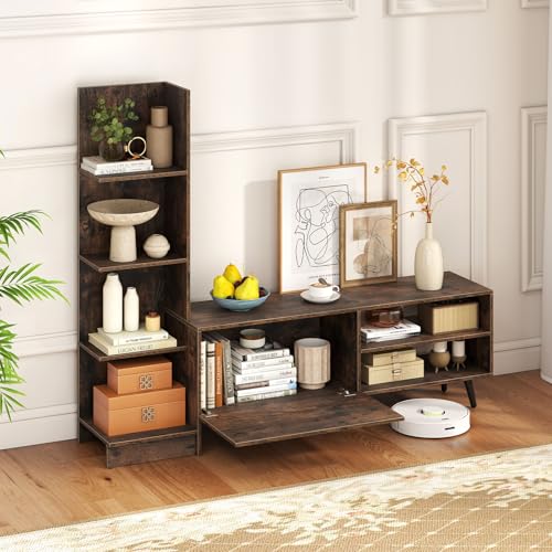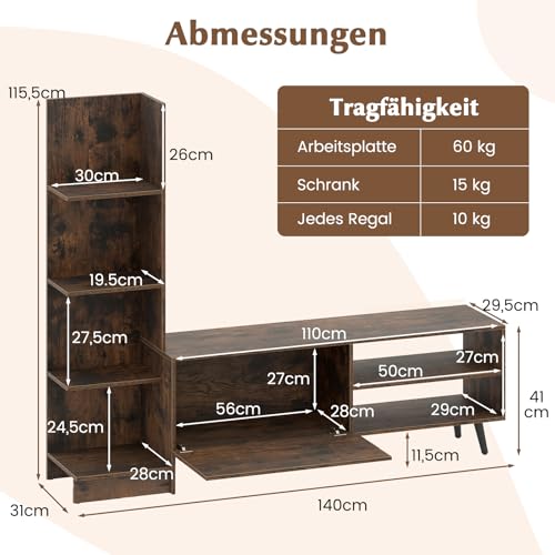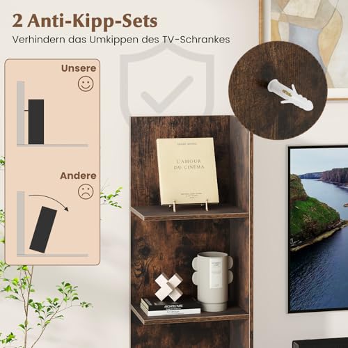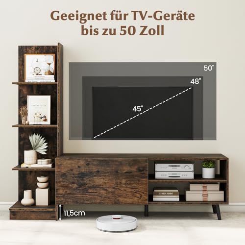 【Integrierte Bücherregalfunktion】Für mehr Stauraum verfügt der TV-Schrank über ein eingebautes 4-stöckiges Bücherregal. Dieses Design spart nicht freilich Platz, sondern ermöglicht es Ihnen auch, Bücher, dekorative Elemente und wichtige Dinge genau dort zu darstellen, wo Sie sie brauchen, und bereichert mühelos Ihren Wohnraum.