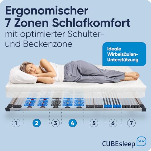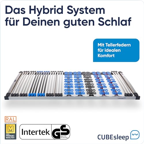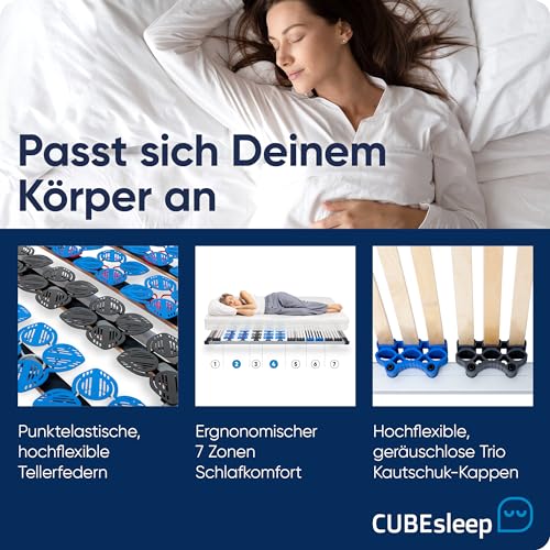 CubeSleep 7-Zonen Lattenrost Plus NV Tellerfeder/Federleisten 100×200 cm | Nicht verstellbar – starr | fertig montiert | Made In Germany | GS Zertifiziert – geprüfte Sicherheit