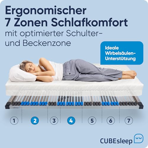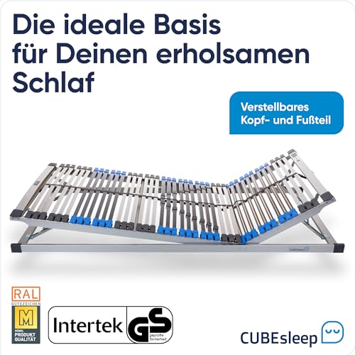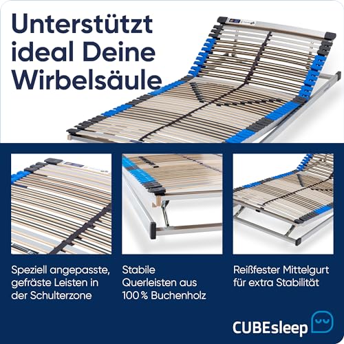 CubeSleep 7-Zonen Lattenrost Pure KF 44-Leisten | Kopf- und Fußteil verstellbar | Federung mit Härteregulierung | Made In Germany | GS Zertifiziert – geprüfte Sicherheit (90 x 200 cm)