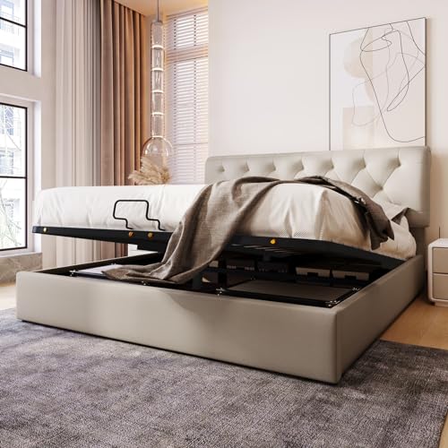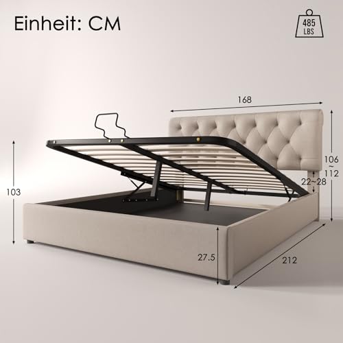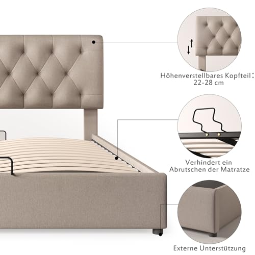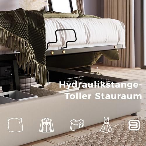✅ 【Hydraulikstange-Toller Stauraum】Großer Bettkasten unterhalb des hochklappbaren Lattenrosts mit üppig Stauraum für die Aufbewahrung von Decken, Kissen oder Bettwäsche, Lattenrost durch Hubzylinder leicht hochklappbar.