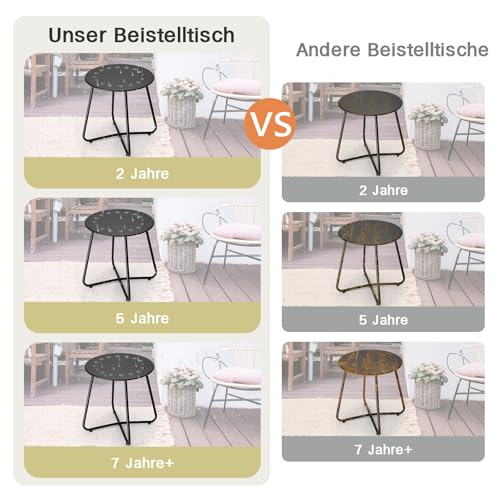 Langlebiges Material: Dieser Metall-Terrassentisch mit hochwertigem pulverbeschichtetem Design wird nicht abschälen, rosten oder verrotten denn normale Holztische für den Außenbereich. So können Sie mit diesem kleinen Terrassentisch ein gemütliches Bad in der Sonne nehmen und Ihre Kaffee- und Teezeit genießen.