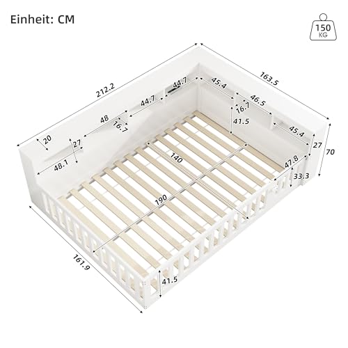 Reichlich Stauraum: Das Bett ist mit praktischen Ablagefächern an der Seite des Bettes ausgestattet, Bücher, Utensilien und andere Dinge können unbestimmt platziert werden, so dass das Schlafzimmer ordentlich und aufgeräumt ist, auf Wiedersehen zum Durcheinander.