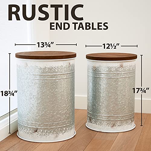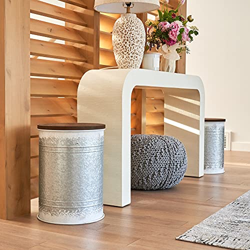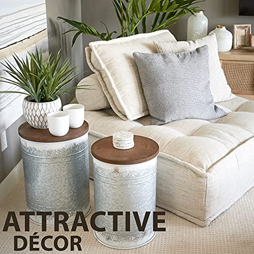 Stabile rustikale Beistelltische – mit einem versteckten Talent: Die Bauernhaus-Endtische sind wahre Multitasker. Ein Beistelltisch mit Stauraum und ein verzinktes Stahldekor mit einem schönen Holzdeckel in einem. Um das Beste allesamt ihm herauszuholen, werden die Metall-Aufbewahrungsboxen in einem Set von 2 Größen geliefert.