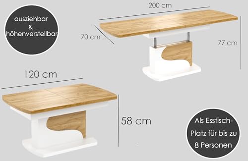✅ Ausziehbarer Couchtisch mit abgerundeten Ecken – Der Couchtisch Höhenverstellbar lässt sich sich bequem von 120 cm / 160 bis auf 200 cm ausziehen und bietet dann Platz für bis zu 8 Personen, ideal für mehr Ablagefläche oder wie Esstisch in kleinen Räumen. Perfekt für Apartments oder Wohnungen mit begrenztem Platzangebot.
