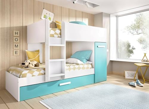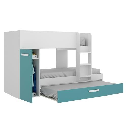 SCHLAFZIMMERZUSAMMENSETZUNG ? Komplettes Schlafzimmer, Kinderzimmer, Bridge-Möbelset, 244 x 112 H150 cm, Hellblau außerdem Weiß