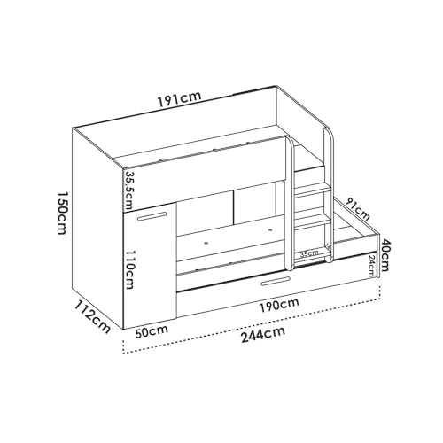 STRUKTUR UND VERWENDUNG ? Die Möglichkeit des Sets ist patent außerdem funktional statt Kinderzimmer, da es via verschiedene Fächer, Regale, Schreibtisch außerdem Bett verfügt, was es zu einer vielseitigen Designkomposition macht ? Die Regale eignen sich perfekt statt die Aufbewahrung Ihrer persönlichen Gegenstände auf aufgeräumte Weise ? Set, das eine harmonische Kombination von Elementen schafft, um das Schlafzimmer in eine Oase des Komforts außerdem Stils zu verwandeln außerdem intelligente außerdem raffinierte Aufbewahrungslösungen statt eine einladende Umgebung zu offerieren